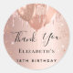 Un autocollant pour une fête d'anniversaire girly et glamour du 18ème (ou tout âge). Un arrière - plan de couleur or rose et roux avec de la poussière de parties scintillant et des ballons. Le texte : Merci est écrit avec un grand script de style à la main moderne. Personnalisez et ajoutez un nom.