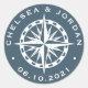Imprimés en blanc contre un bleu profond de l'océan, ces autocollants nautiques feront un ajout personnalisé unique à vos invitations de mariage, à l'exception des annonces de date, ou des faveurs d'événement. Le centre présente un graphique d'un rose de boussole et est entouré de deux lignes de texte personnalisables. Il suffit de modifier le texte et de modifier la courbure à l'aide de l'outil de design de Zazzle pour obtenir un design unique et personnalisé ! Consultez ma boutique pour trouver les produits correspondants dans cette ligne.