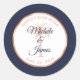 Customisez ces élégants stickers bleu marine et or rose avec votre touche spéciale. Ce design moderne comprend les mots "Happily Ever After", les noms de mariée et de mariée et la date mariage, un palmier artistique et un rose métallique en métal en feuille de cuivre rim sur un arrière - plan bleu marine. Si vous avez besoin d'aide ou d'articles correspondants, veuillez me contacter.