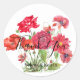 Sticker Rond rose de pavot rouge dahlia ranunculus bouquet
