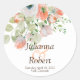 Sticker Rond Rose et bleu aquarelle florale mariage classique o
