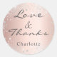 Un fond métallisé imitation rose gold. Décoré de fausse poussière de paillettes argentées. Personnalisez et ajoutez votre prénom. Avec le texte : Amour & Merci.