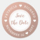 Tendance enregistrer les autocollants de date avec un cadre doré rose.Personnalisez avec les noms de date et de couple.