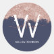 Sticker Rond Rose Gold Navy Blue Girl Parties scintillant pouss