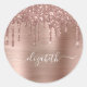 Autocollants élégants et girly personnalisés avec parties scintillant en or rose dégoulinant un arrière - plan en or rose faux métallique. Personnalisez avec votre nom dans un script blanc assez tendance avec des swashes.