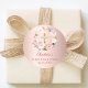 A rose gold gradient background, decorated with watercolored pink and ivory flowers in a wreath and a golden cross. Personalize and add the name and date.