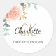 Sticker Rond Rose gold rose floral greenery nom monogramme