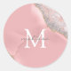 Rose Gold Rose Girl Monogramme Nom Parties scintillant en marbre Classic rond Sticker