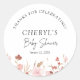 Baby shower rose à thème floral mignon préférence autocollant avec une illustration dessinée à la main