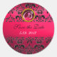 Sticker Rond ROSE NOIR DAMASK MONOGRAM, rubis rouge, fuchsia