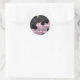 Sticker Rond Rose Noir et Or Points Chic Nœud Cadeau de Fête