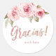 Faux rose or brillant parties scintillant "gracias" script et rose rose floral, élégant et élégant, grand customisé merci pour les autocollants.