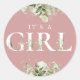 Sticker Rond Rose Poussiéreux C'est Une Fille Florale Baby Show