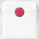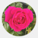 Un autocollant rond personnalisé, avec une image d'une belle rose rose, dessus.