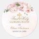 Autocollant rond rose pâle Floral First Holy Communion Classic