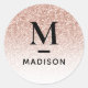 Parties scintillant Rose Rose Or Ombre Moderne Monogramme Nom Sticker Classic rond