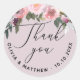 Elegant autocollant de remerciement floral délicat avec des fleurs aquarelles pour le jardin botanique Mariage / Fiançailles / Dîner de répétition / Mariage / Enterrement de vie de jeune fille dans des couleurs pastel rose poussiéreuse / rose, rose pâle.