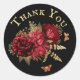 Sticker Rond Rose Rouge or Floral Papillon Merci