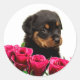 Sticker Rond Rose Valentin Rottweiler Puppy