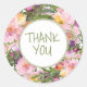 Sticker Rond Rose violet Floral vert Feuille Merci