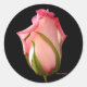 Stickers avec un closeup d'un beau rosebud rose rose sur un arrière - plan noir. Très joli sur le dos des cartes ou des invitations! Photographie numérique par Sue Melvin