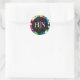 Sticker Rond Roses arc-en-ciel Noir & Blanc Mariage floral vibr