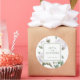 Stickers de mariage rond floral aux Roses blanches, conçus sur un arrière - plan blanc avec une bordure de charbon. Le texte comprend les prénoms et la date du Mariage de la mariée et de la chambre de commerce. Pour personnaliser, insérez simplement vos détails dans notre modèle facile, en remplaçant l'exemple de texte.