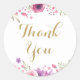 Sticker Rond Roses Florales Aquarelle Écriture Dorée Merci