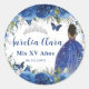 Sticker Rond Roses Florales Bleu Royal Marron Princesse Argent