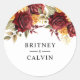 Burgundy Rouge Jaune Roses Floral Élégant Mariage Classic Round Sticker