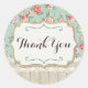 Sticker Rond Roses Shabby Chic, dentelle et toile de jute Merci