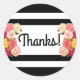 Sticker Rond Roses sur le Merci moderne de bandes noir et blanc