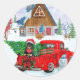 Sticker Rond Rottweiler Chien en livraison Noël Camion Neige