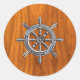 Un design de roue nautique sur un décor arrière - plan de placage en teck de style grain. Un cadeau marin moderne et osé. Utilisez le lien "Demandez à ce concepteur" pour nous contacter avec vos demandes de design spécial ou pour obtenir de l'aide pour répondre à vos besoins de personnalisation.