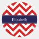 Sticker Rond Rouge Blanc LG Chevron Marine Nom bleu Monogramme