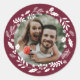 Autocollant photo de Noël moderne et minimal avec une couronne blanche aux baies sèches et branches à feuillage persistant encadrant un espace réservé pour votre photo sur un arrière - plan rouge. Personnalisez en changeant la couleur de l'arrière - plan ou de la couronne pour correspondre à votre style ou quitter tel quel.