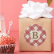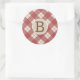 Sticker Rond Rouge bordeaux carreau rustique kraft monogramme
