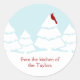Sticker Rond Rouge Cardinal Bird Snow Scene Baking Noël