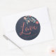 Cet autocollant mariage Love rond présente une belle florale contre un arrière - plan de tableau rouge avec le mot "Love" dans la police de caractères de script moderne. Utilisez-le pour sceller vos enveloppes Mariages ou pour la décoration. Consultez le Faire-part de mariage et les autres éléments mariages correspondants de ma collection ici -> http://www.zazzle.com/collections/bluish_chalkboard_floral_bridal_and_wedding-119872540777216768?rf=238364477188679314 Personnalisez-le avec vos détails en remplaçant le texte de l'espace réservé. Pour plus d'options, cliquez sur le bouton "Customiser". *Veuillez noter que le filigrane Zazzle qui apparaît dans l'aperçu du zoom n'apparaîtra PAS sur le produit imprimé final. © Bois de rose et agrumes