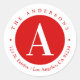 Sticker Rond Rouge et blanc | Adresse de retour du monogramme