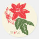 Sticker Rond Rouge et vert Poinsettias Mariage de Noël