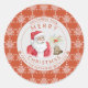 Sticker Rond Rouge Flocons de Neige Joyeux Noël Père Noël