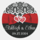 Sticker Rond Rouge, Noir, Blanc Damas Amour Coeurs Mariage