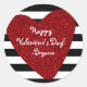 Sticker Rond Rouge Pailleté Aspect Cœur Noir Blanc Saint-Valent
