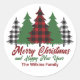 Cet autocollant de vacances rustique présente des plaids rouges et des arbres de Noël verts au-dessus de votre message Joyeux Noël et Bonne Année. Un look mignon et traditionnel qui est actuellement de nouveau dans le style, ces autocollants de cadeau festifs sont parfaits pour une famille qui aime un design classique et nostalgique.