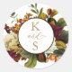 Sticker Rond Rouge rustique |Orange Floral Bouquet Mariage Mono