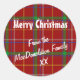 Sticker Rond Rouge tartan plaid Joyeux Noël