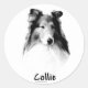Sticker Rond Rough Collie Charbon