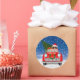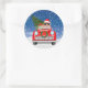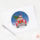 Sticker Rond Rough Collie Chien Conduite Voiture En Neige Noël