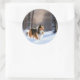 Sticker Rond Rough Collie Laisser Neige Noël